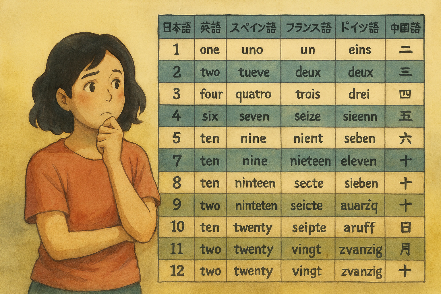 英語・スペイン語・日本語の数え方